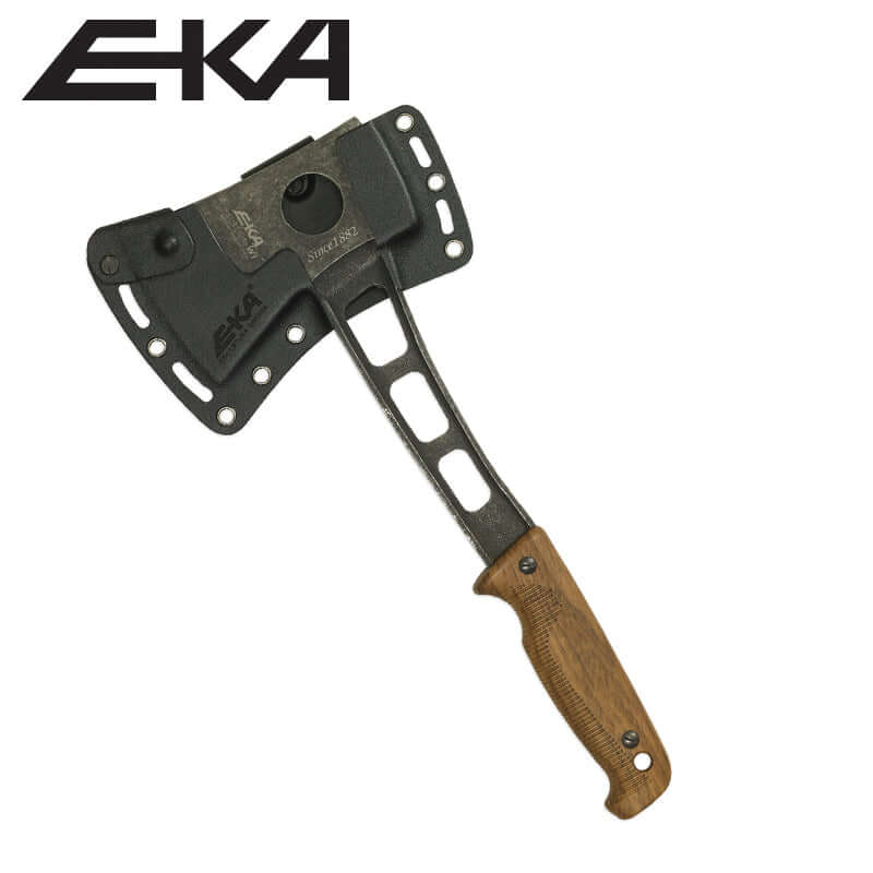 The HatchBlade W1 is a perfect and compact all-round axe. With an ergonomically designed handle that helps the user get a good grip when holding harder. With a whole piece of steel as a basis, it's a lot of steel for the money. Comes with a protective case in Kydex, which in addition to the safety lock has a belt clip that locks securely around. You'll never have to risk a pop button again!