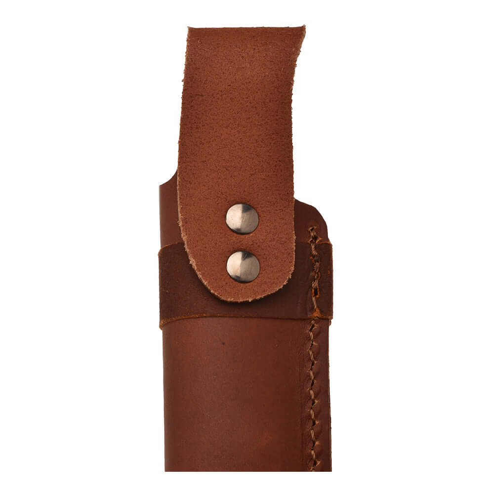 It is no coincidence that Galten is one of our most popular hunting knives! When you buy Galten you get a pretty and functional knife in a good size. Like all our knives Galten is handcrafted with material from the nature. The slightly bent handle is made of curly birch with details in brass. The blade is made of stainless Sandvik 12C27. The included leather sheath is easily attached to your belt before going out in the woods.