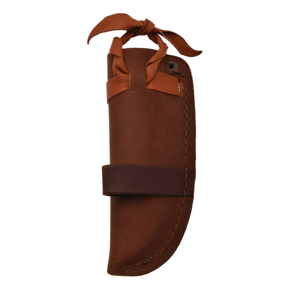 Handle of oiled curly birch and reindeer antler. Blade 21x75mm of stainless steel, hardened to 57HRC. Brown cowhide sheath with plastic insert. The knifes sheath can be mounted both horizontal and vertical.