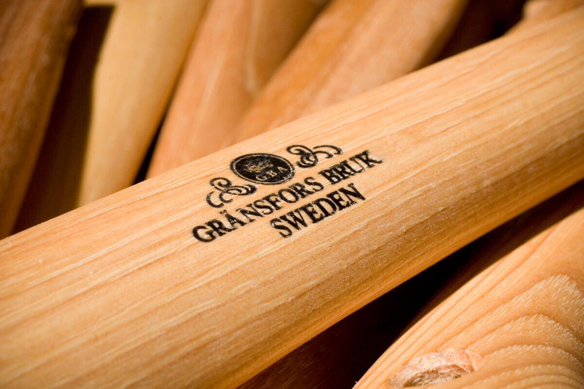 All our shafts except the Small Hatchet and the Outdoor Axe are delivered together with a wooden wedge and a three-legged iron wedge.
